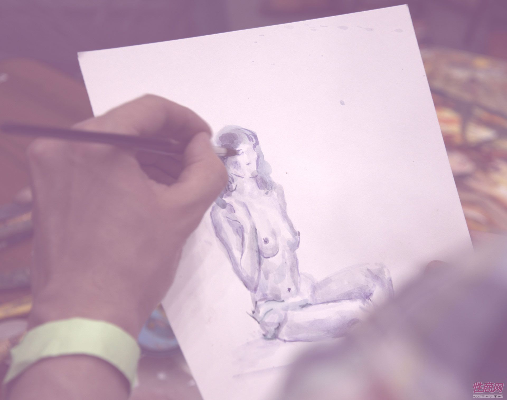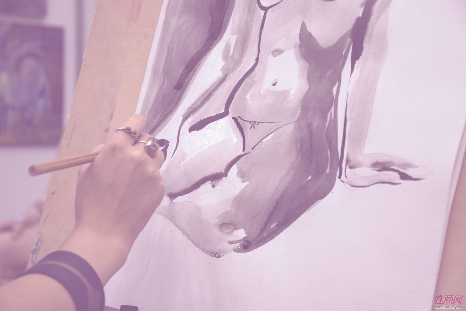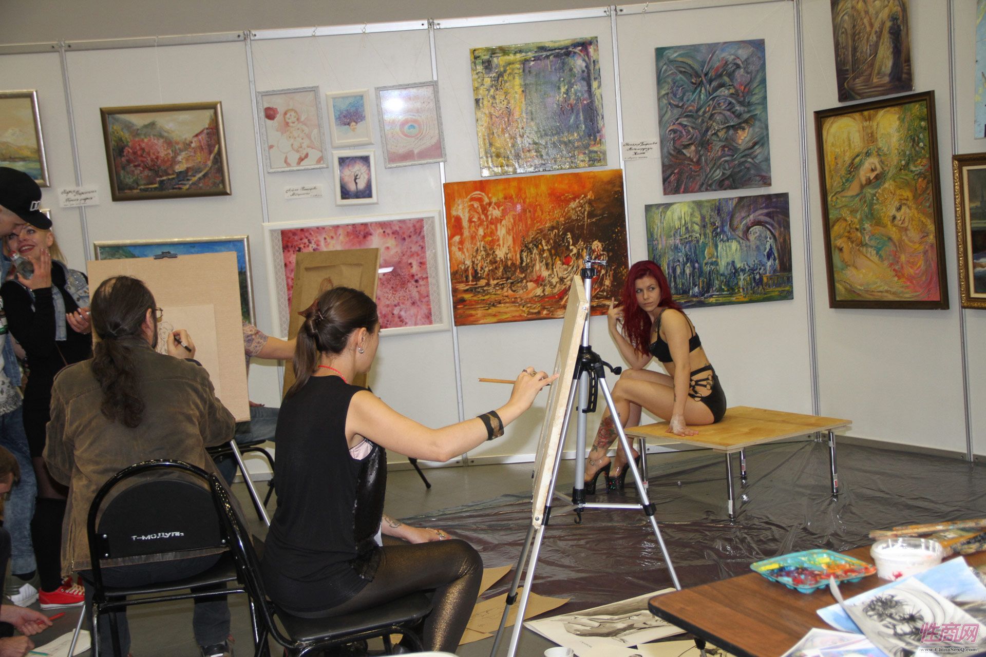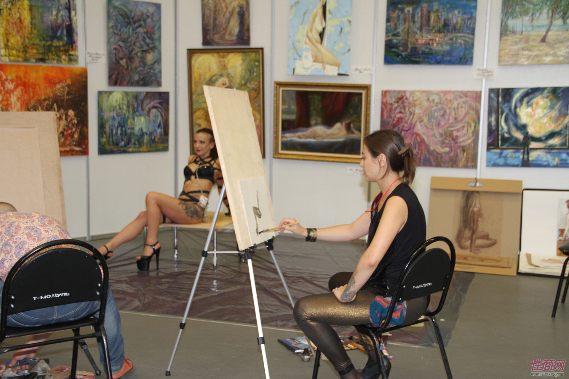艺术家现场绘画,人体模特非常专业