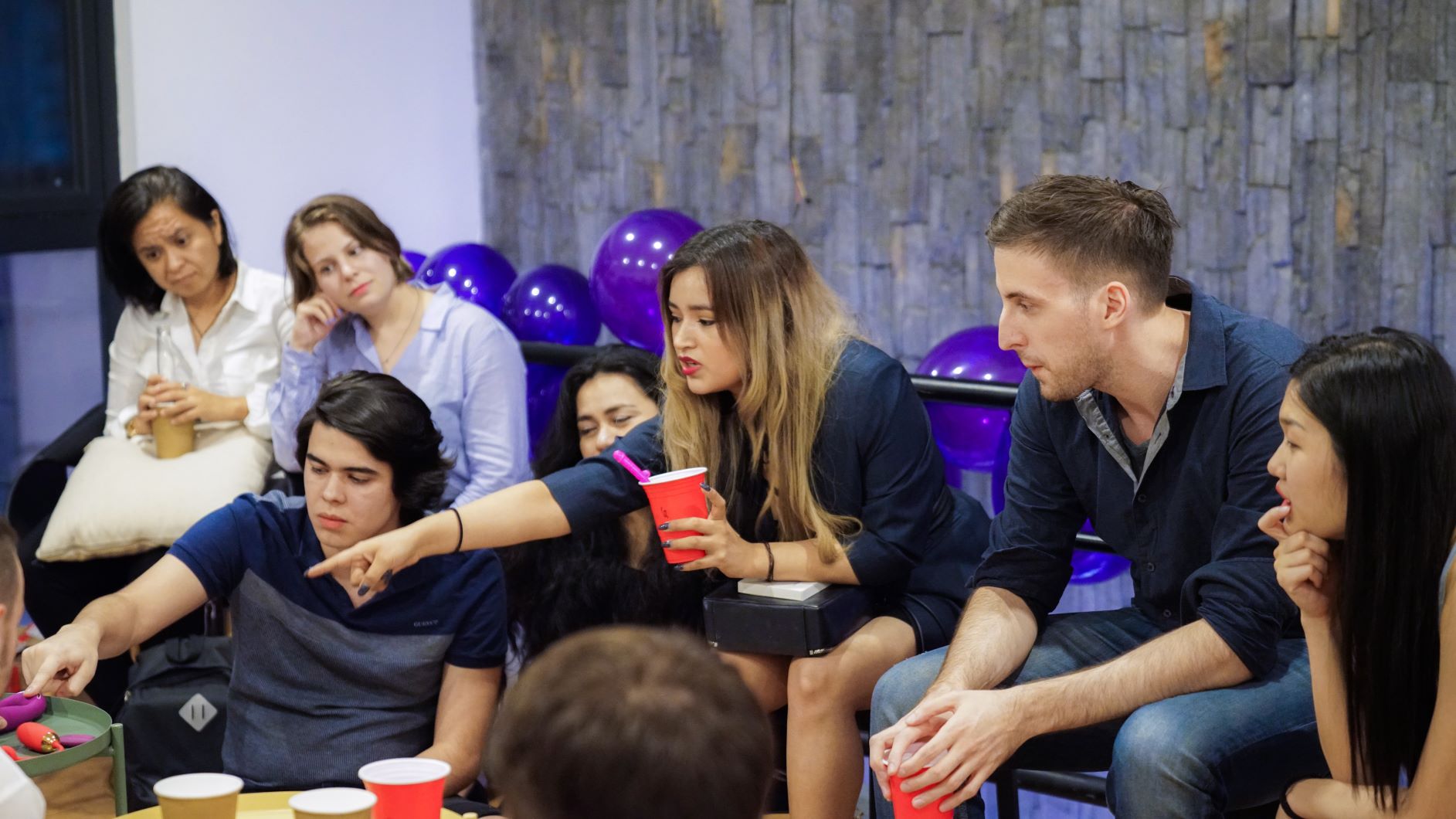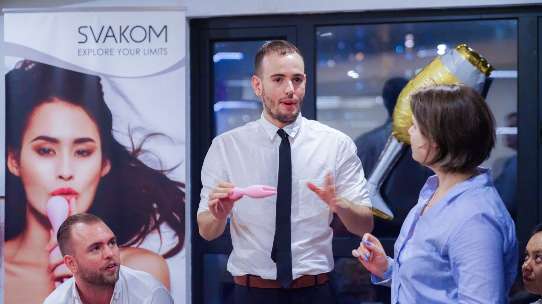 当我们所有的玩具测试者们到场后,我们开始了我们历来的讨论会。当不同文化、性向、种族的人齐聚一堂,每个人将自己的喜好与所有人交流,话题间让人备受启发。更象征着我们的产品不仅仅可以给人带来快感,还深藏着平等与情感交流。另外我们还与各位测试者们分享了我们新上市的莉芙(Nymph)和即将上市的埃拉(ELLA),她们分别是一个双头的章鱼棒和一个由SVAKOM手机APP控制来操作的跳蛋。
