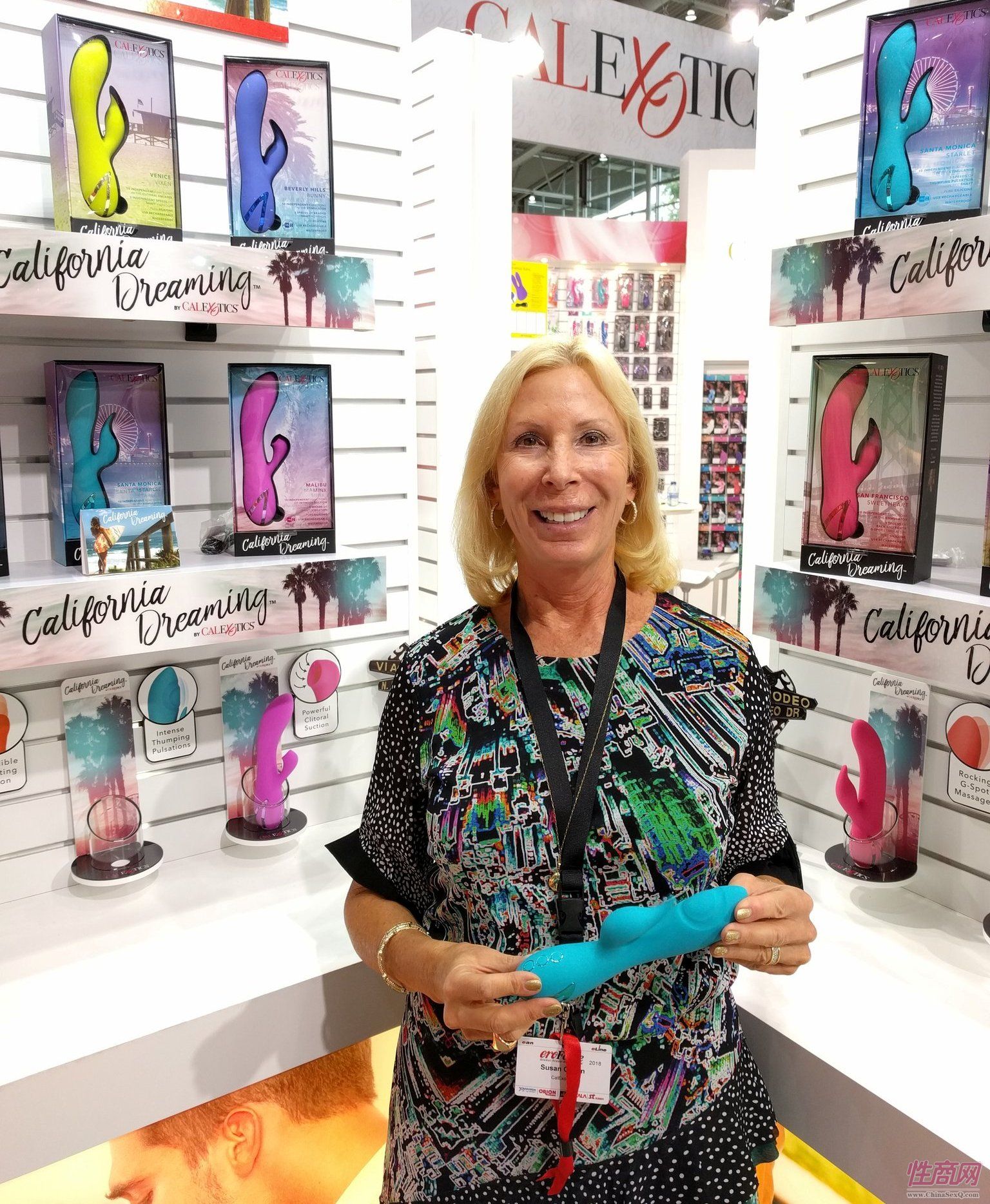还有众多知名参展商,包括Adrien Lastic,爱之眼,Aneros,B Swish,AVN,FemmeFunn,Fun Factory,Kheper Games,Kiiroo,Lovehoney,MyStim,NS Novelties,pjur,Shots,Svakom,System JO,Tenga,Topco Sales,Uberlube,We-Vibe,Womanizer和Wet Lubricants。