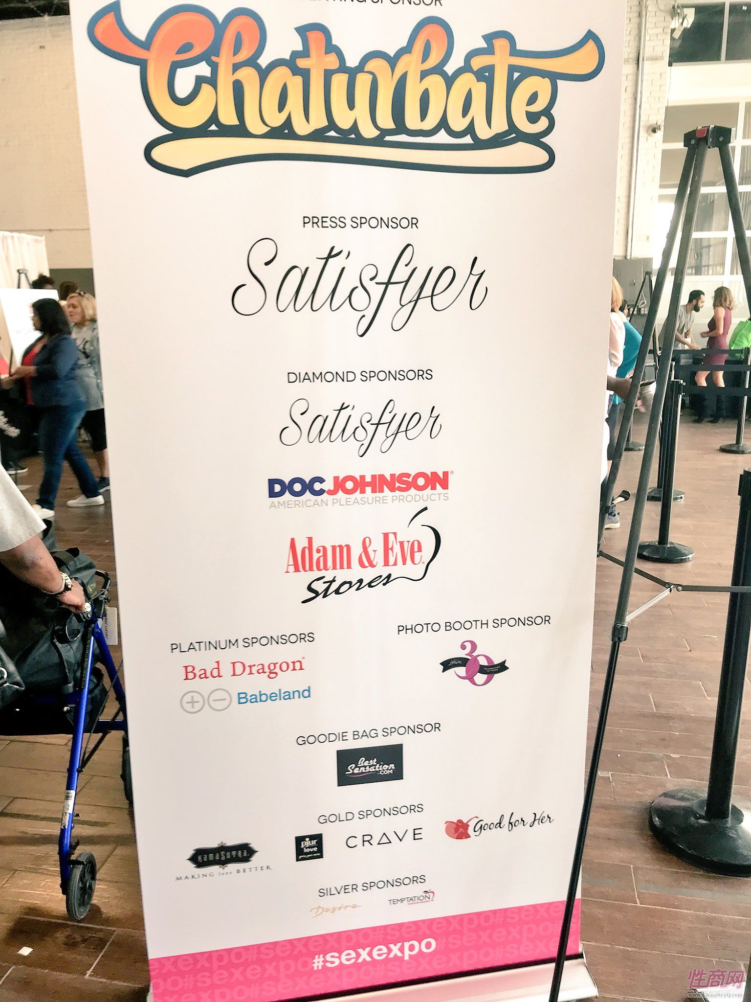 展馆入口的大幅广告,Satisfyer是钻石赞助商