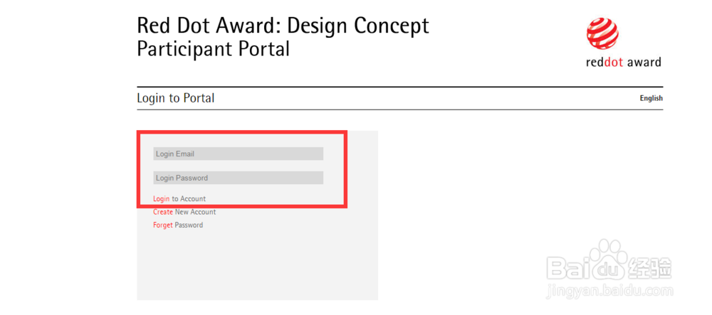 一、在浏览器输入红点设计大奖, 进入红点中文官网,点击登录输入账号(邮箱)、密码 。点击Login 登录进入。