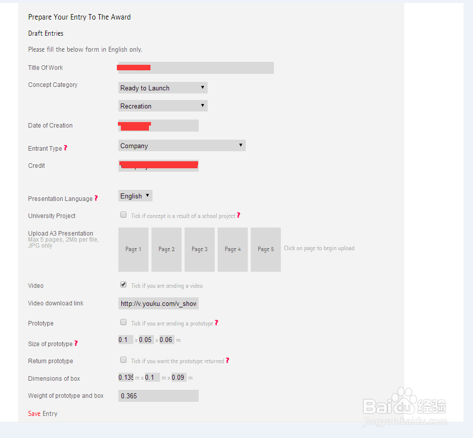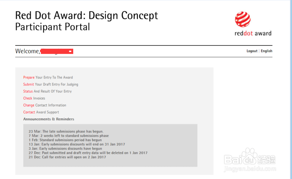 (线上报名操作参考:百度经验 如何申报红点设计大奖)
