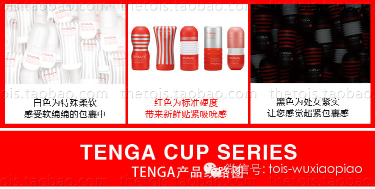下面是关于TENGA杯子的种类,今天主要讲红色系列,红色系列属于柔软度适中的。明后天讲紧实感的黑色系和超柔软的白色系。