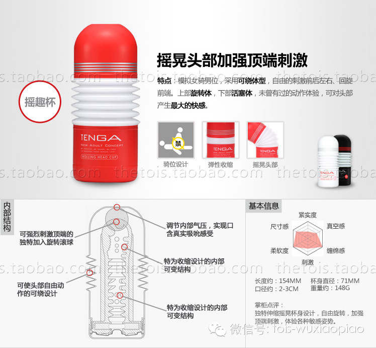 大脑幻想为:深喉呀~吹箫呀~要有伴奏也是极好的~那一吸一吐之间的销魂啊~这款杯子学名叫做口交杯101;他的价位是最为实惠的39元,也是日本tenga这个牌子最为元老级的杯子的,他模拟的是人类的口腔,喜欢口爱的一定要试试!在使用的时候一定要记得,配合进出适当的按住他的出气孔,那样会有强烈的吸吮感。