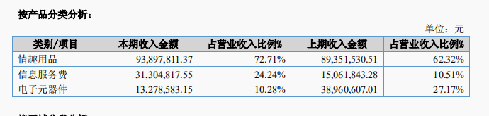 他趣2018年营业收入为1.29亿元,相比于2017年下滑了9.92%,主要原因是公司的总体规划要求,子公司臻万科技进一步削减了电子元器件业务,电子元器件销售收入大幅下滑,最终导致公司合并报表收入有所下降。剔除臻万智能电子元器件收入影响,公司报告期内电商业务保持稳定、信息服务收入大幅增长。