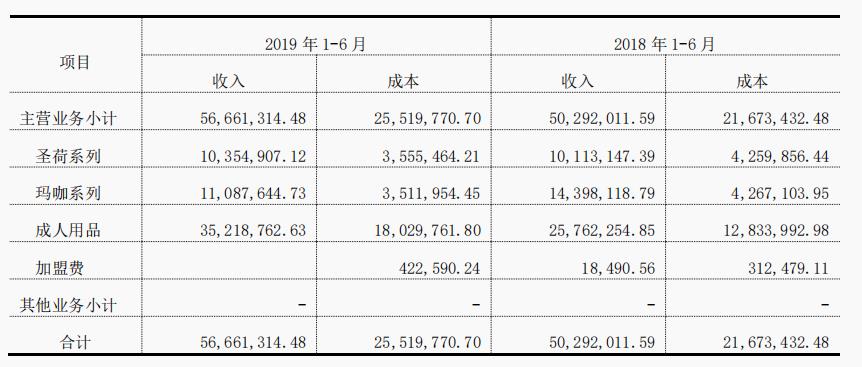 从财报中可以看到,圣荷桔色上半年总销售费用达到了1551万元,较去年同期的493万暴涨214.60%。除了展店补贴外,还有一部分是举办展览会的开销。旗下的加盟项目主要为桔色成人用品店,提升品牌形象可以侧面宣传企业,也能让更多加盟商受益。因此在上半年多次举办展览会,费用大约为113万元。