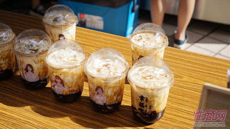 印有女优肖像的性感奶茶