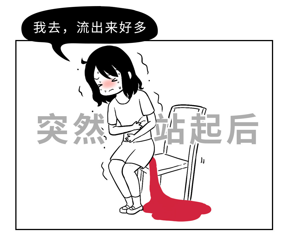 注:大姨妈期间久坐不动,经血流通就会受阻。如果经血没有及时排出,在宫腔积累后就会颜色越变越黑。此时突然起身,大姨妈可能会汹涌而来!