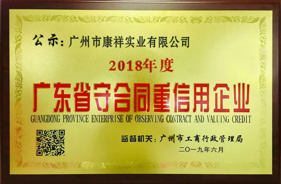 2019年康祥被评为年度广东省“守合同重信用”企业,加持企业信用能量