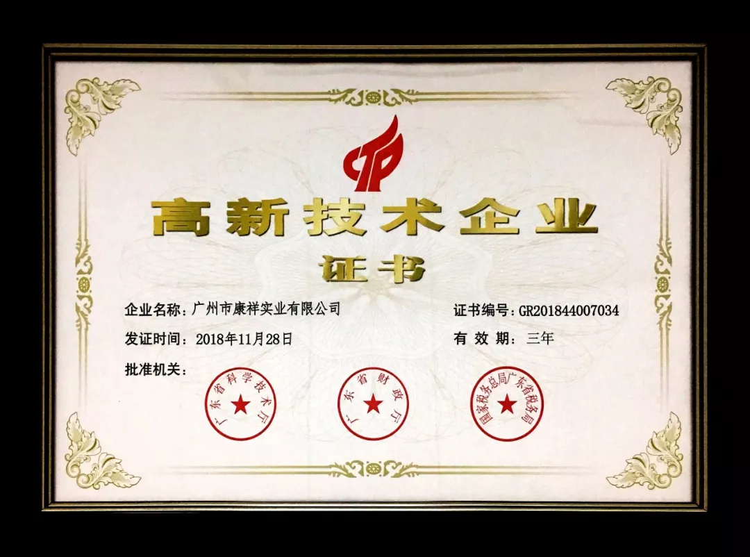 2019年康祥通过广东省高新技术企业产品认定,不断优化产品体系