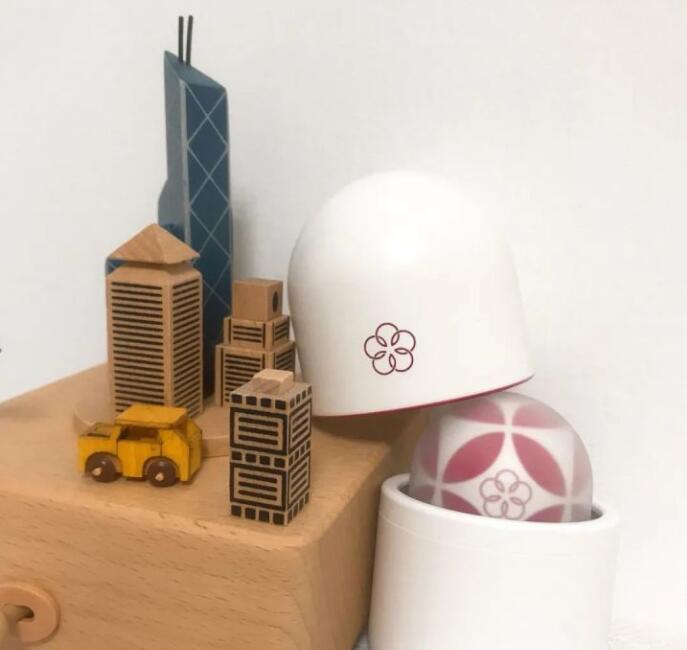 打开盖子以后可爱的小球就映入眼帘了,从上往下俯瞰,正中央一朵小花被四片叶子围成一个圆。从侧面看去,像是四叶草周围散落着一朵朵小花,漂浮着一层薄薄的薄雾。这个造型充满质感又带着趣味。