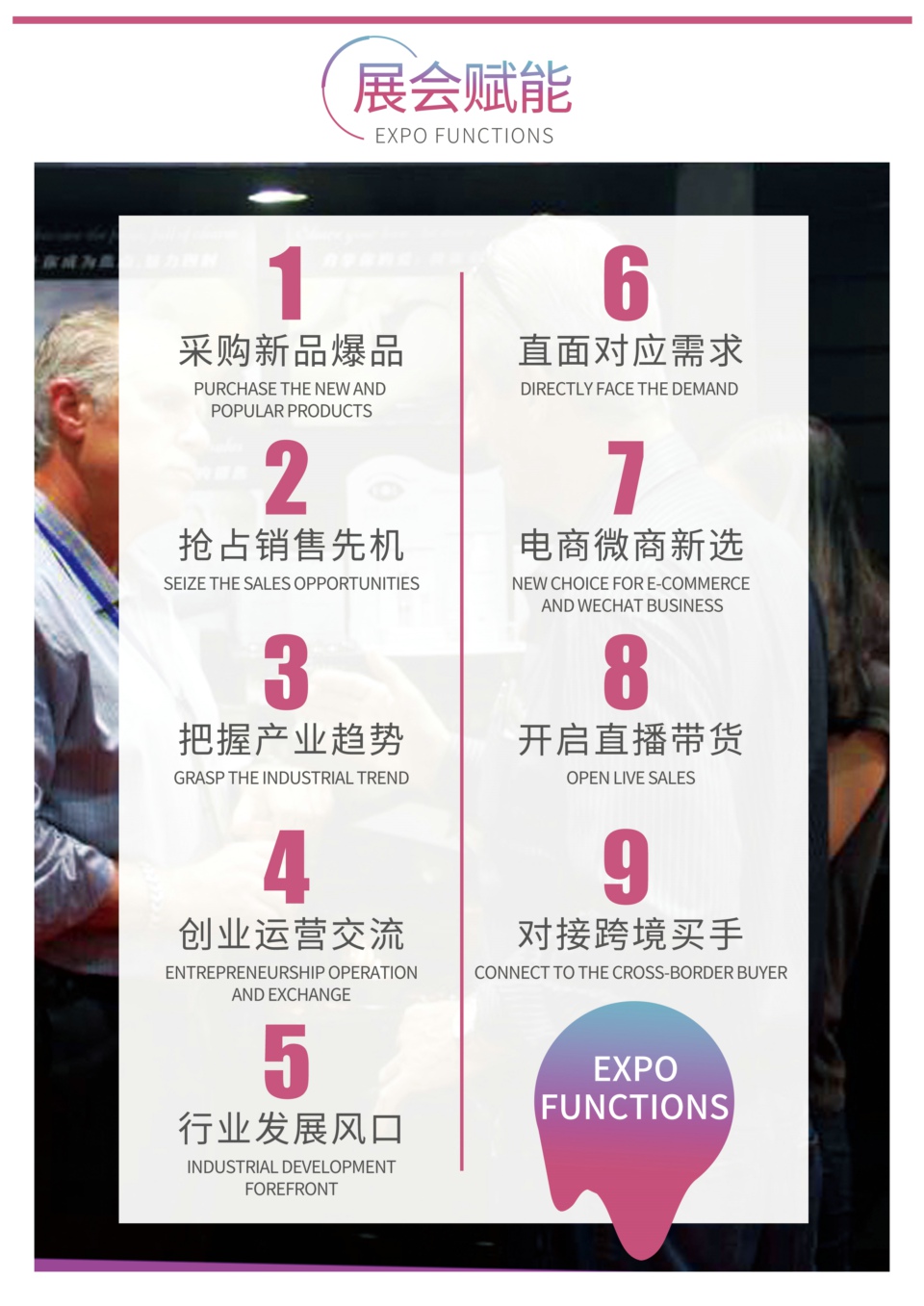 广州性文化博览会创立以来,集合行业资源,依靠丰富的办展经验组织大量的现场活动,为展商提供专业化的展示平台,超高的展会人气,庞大的关注人群能迅速打造参展品牌的知名度,其中产业趋势发布、创新产品展示、品牌评选等活动树立产业标杆,引领行业发展。全产业链一站式服务,满足采购商和参展商一体化需求,促进合作成交,参展**得到国内外企业的高度认可,更是业内人士共聚的年度盛会。