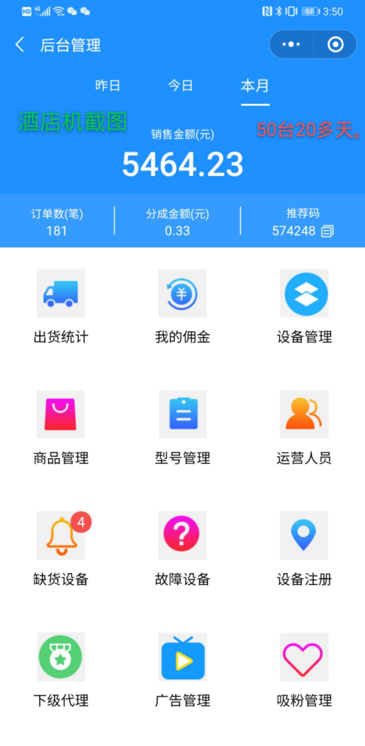 下面再看一下手机端管理后台以及销售额