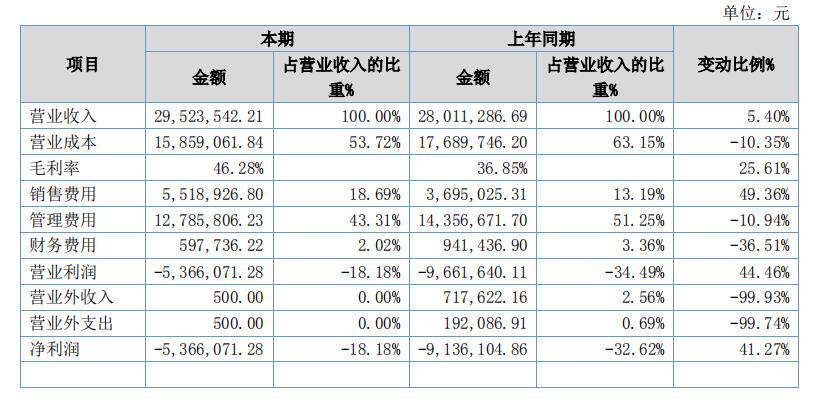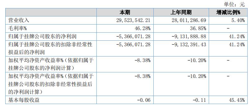 由于疫情的原因,各公司上半年财报披露时间都较晚。最近,爱侣健康科技股份有限公司发布了2020年半年度报告,报告显示,今年上半年营业收入2952.35万元,较去年同期增长5.40%;归属于挂牌公司股东的净利润-536.61万元,较去年同期的-913.19万元,亏损减少了41.24%。