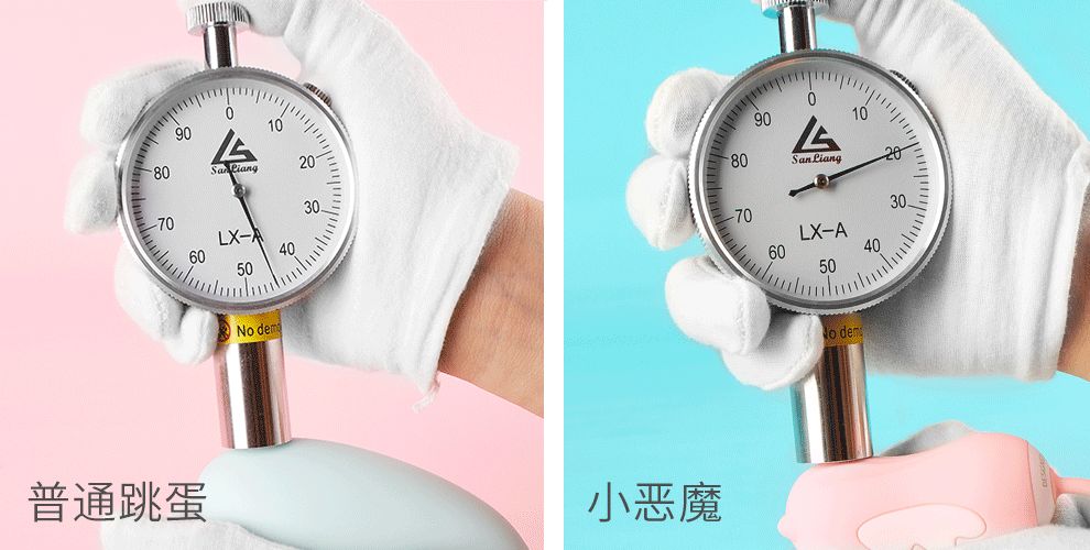 ▲小恶魔与市售跳蛋的硬度对比测试