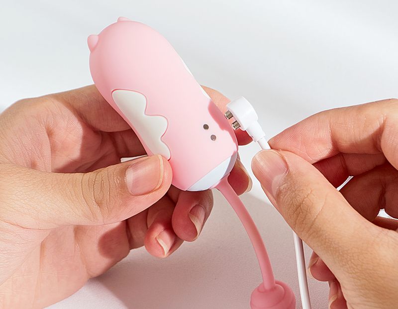 把充电线靠近小恶魔,咔一声,就开始自动充电。