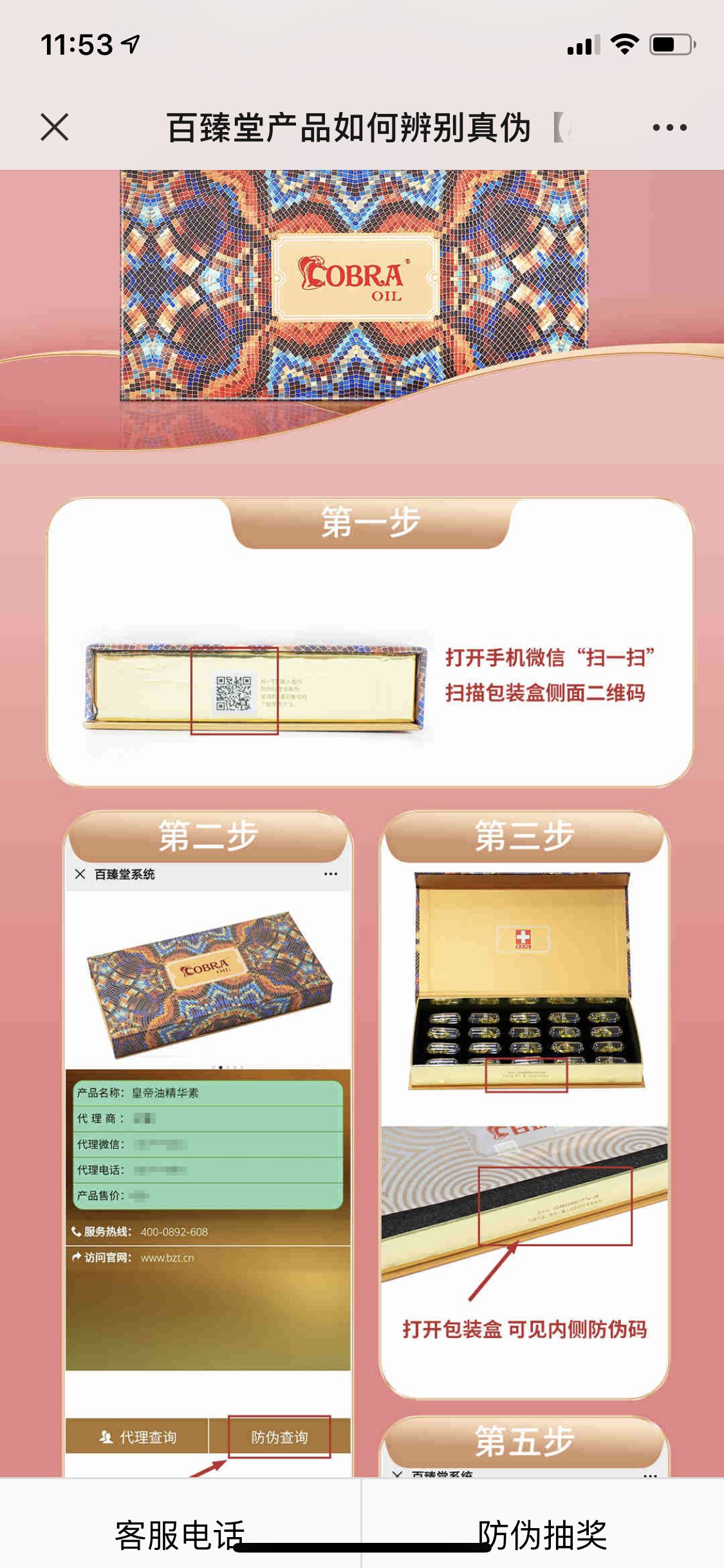 第三:打开盒子,里面侧面有16位防伪码,可以在百臻堂公众号查询。