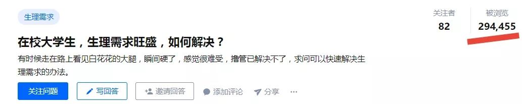知乎上一个关于“在校大学生,生理需求旺盛,如何解决?”的问题被浏览294455次,说明存在同样困惑的人不在少数。