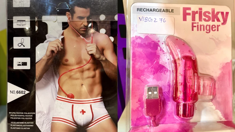 奇葩的性感男护士服(左)和手指形振动器(右)