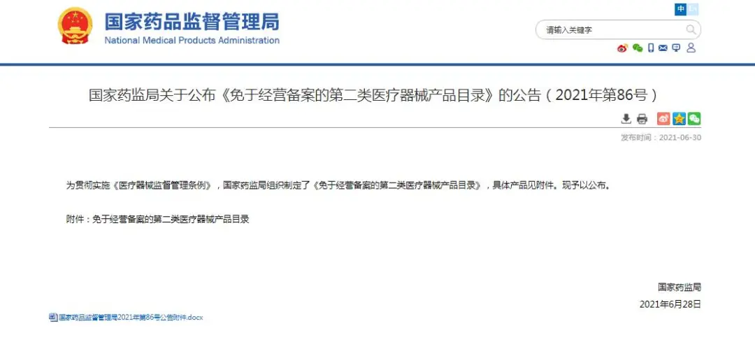 附件:免于经营备案的第二类医疗器械产品目录