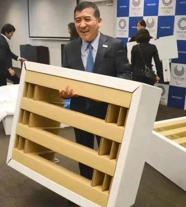 组委会展示纸板床,可以拆卸,自由模块组合(有日本网友表示:真抠门)