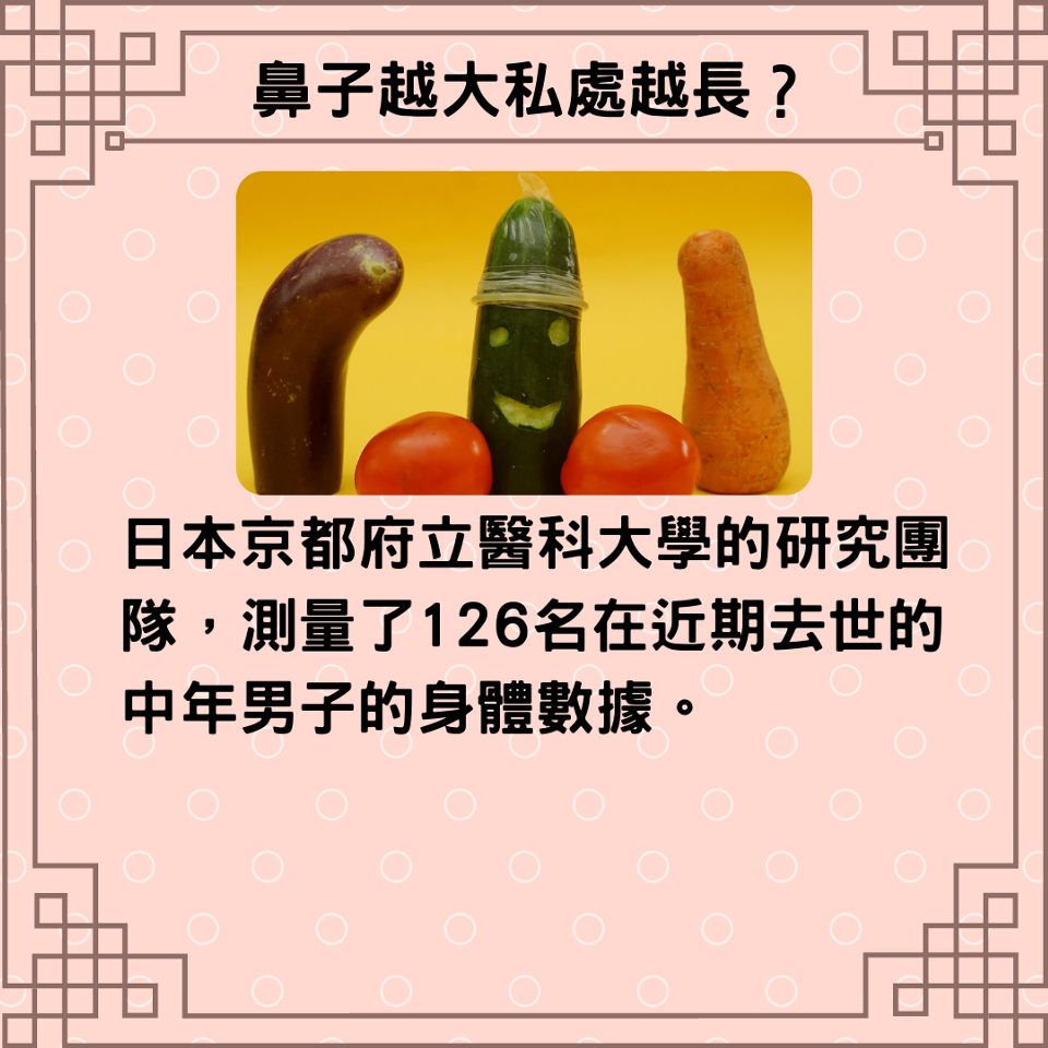 原标题:性愛冷知識︱男性鼻子越大私處越長?日本研究過百具遺體有結果
