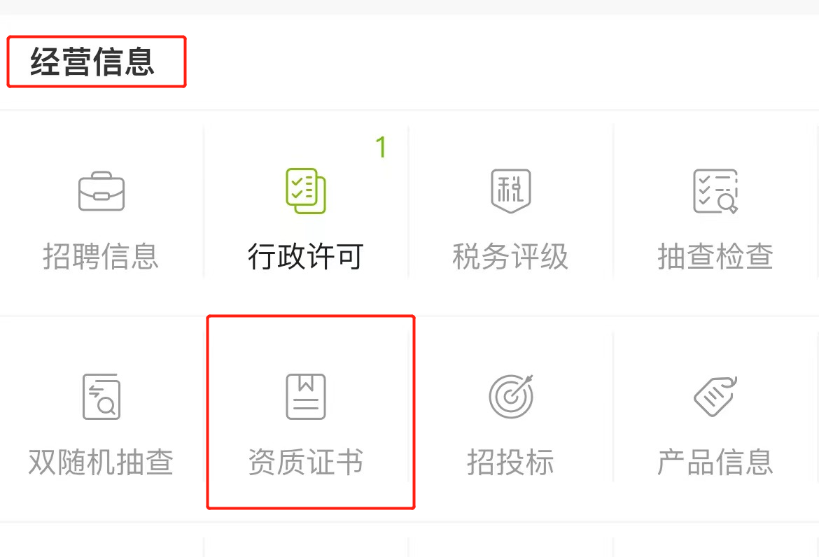 依然使用天眼查,找到经营信息一栏,查看【资质证书】
