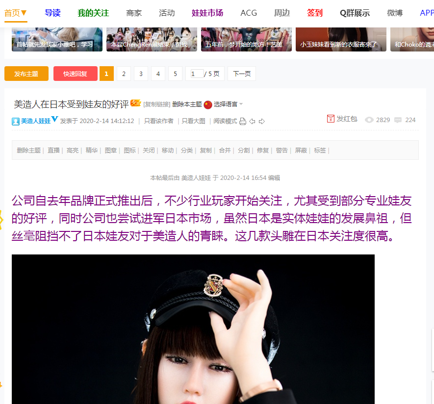 艺美论坛:美造人实体娃娃在日本受到娃友的好评