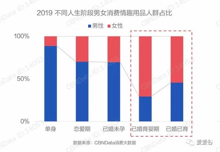 从婚姻状况来说,近八成的情趣用品线上消费由已婚人群完成,已婚育婴期和已婚已育的女性消费占比尤为突出。