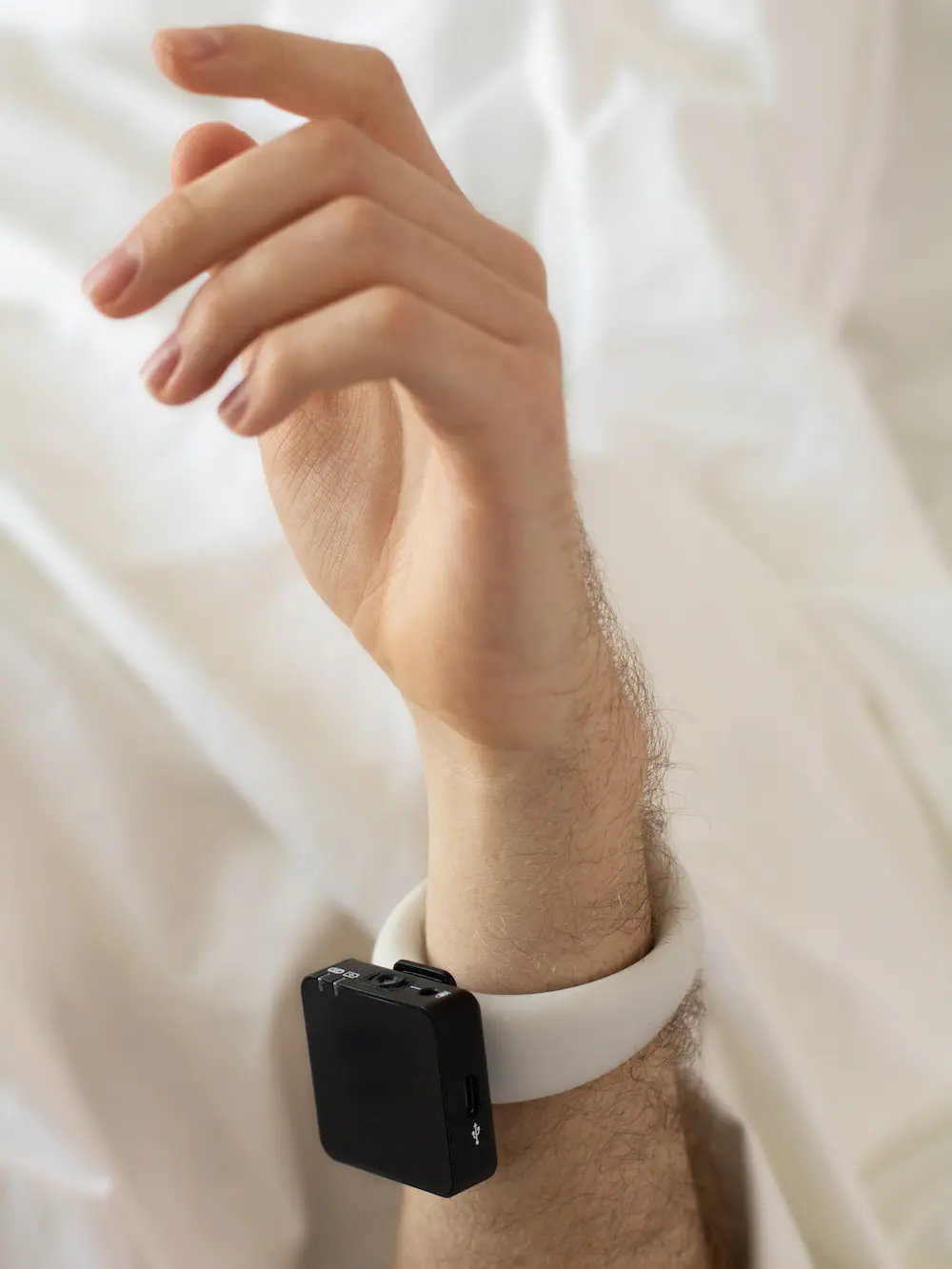 她从套装盒子里拿出一个带有录音、调节音量功能硅胶手镯,可以放大在亲密过程中对声音的刺激,”蕾蓓茨解释道。
