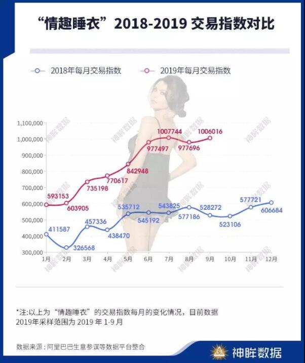 我们挑选出了三个保持增长,但整张态势完全不同的品类——“情趣睡衣”、“实体娃娃”和“润滑剂”。