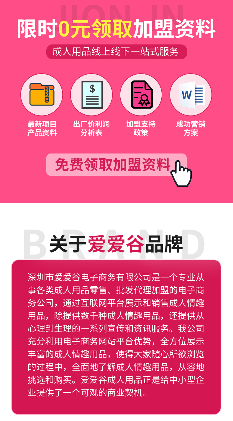 - 成人用品代理加盟情趣厂家直销情趣用品淘宝深圳市东邦网络技术有限公司(成人用品开店:无人售货机、外卖店、网店)爱爱谷品牌