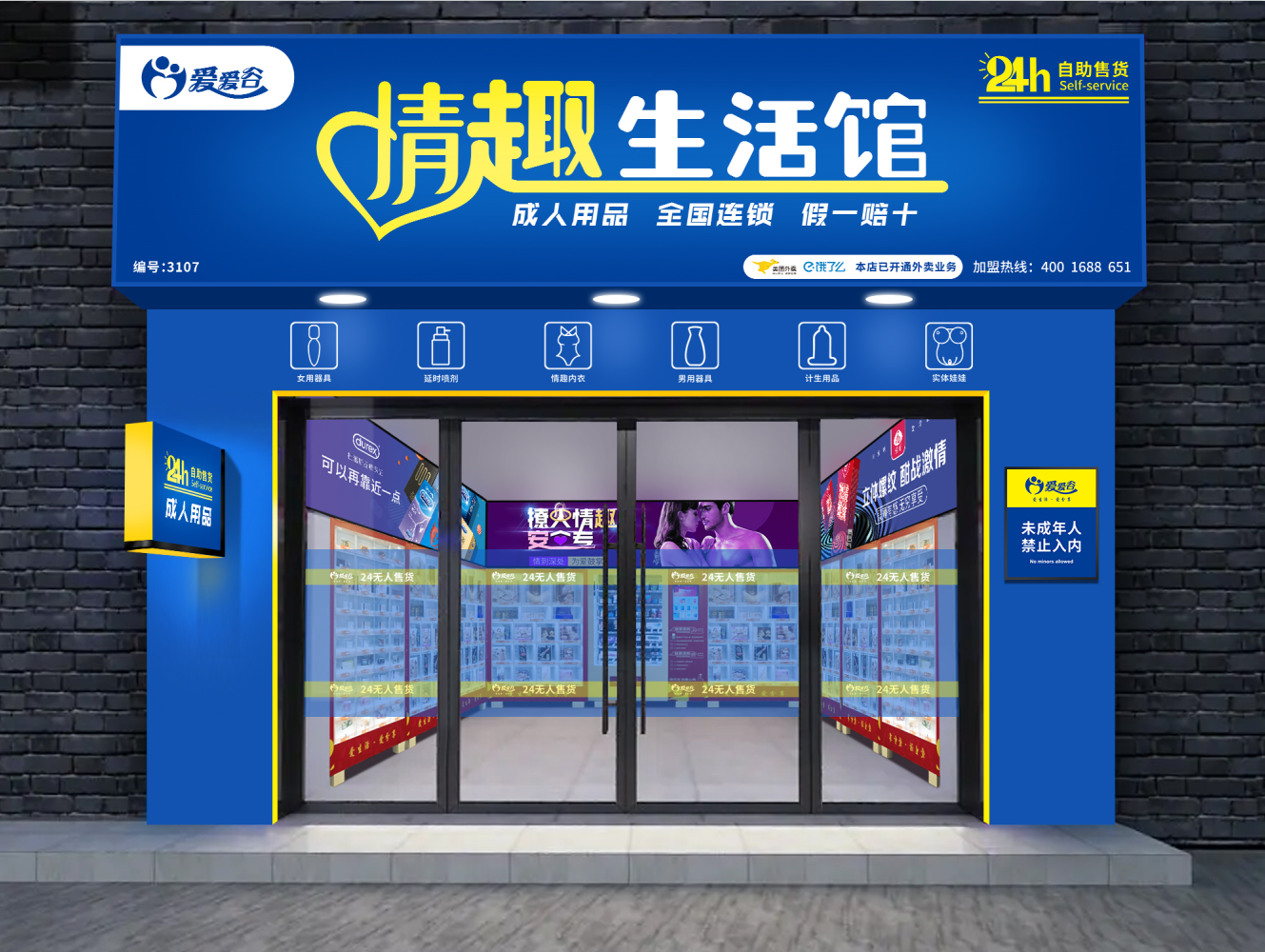 1.加盟【爱爱谷】情趣做成人用品,一人开N店:微商、淘宝、拼多多、京东、天猫、阿里巴巴、有赞、无人售货店、美团外卖、饿了么、线上线下都可做,将消费者一网打尽。