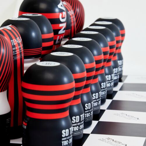 7月初TENGA正式推出限量版国际象棋造型飞机杯套组“Tenga Chess Set”,由历代TENGA CUP组成完整的国际象棋,配有定制棋盘。