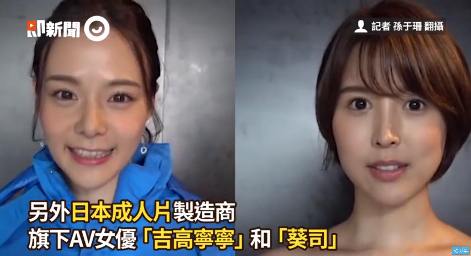日本情趣影视制造商旗下女优吉高宁宁和葵司,拍摄视频感谢台湾省警察大队。(图/记者孙于珊翻摄)