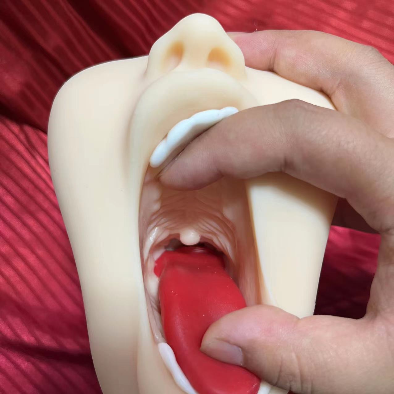 用手轻轻的掰开名器×INGTOYS波多的嘴,波多的口腔内部构造一览无遗,它的舌头做的非常的柔软,嘴巴上面的牙齿,以及我们口腔上颚的腭皱襞都很真实的复刻了!
