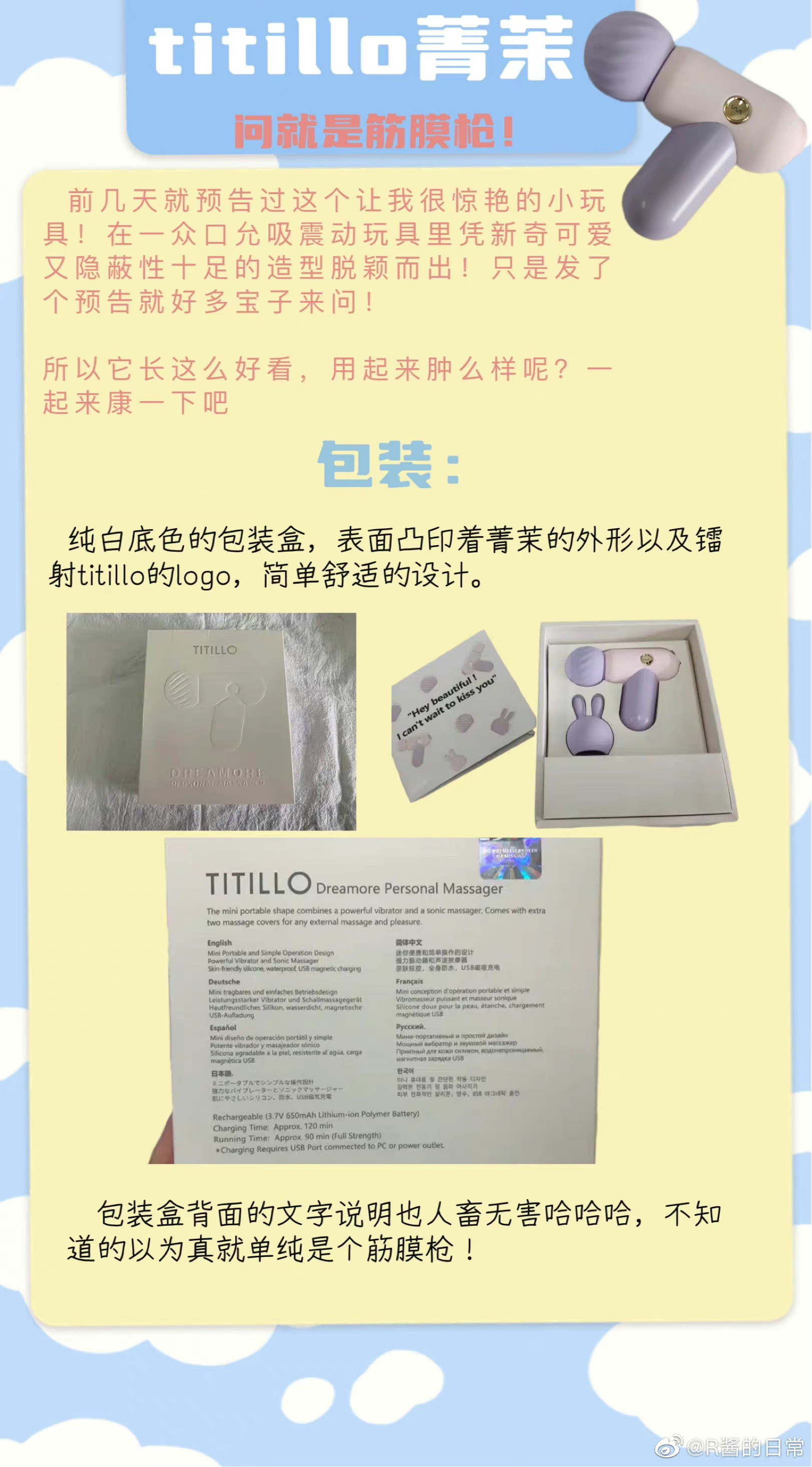更多该专栏内容,戳这里下一篇天啊 ! 这小玩具确定不是mini版的菁茉枪吗?▼包装很严密不管是外层塑封,还是产品盒子,都有防撕标签,可以有效防止二次销售,这一点可以完全放心~▼造型外观小小一只,也太像筋膜枪了吧[哈哈]硅胶部分软乎乎的,尤其是兔兔头,捏在手里很好rua,好可爱...