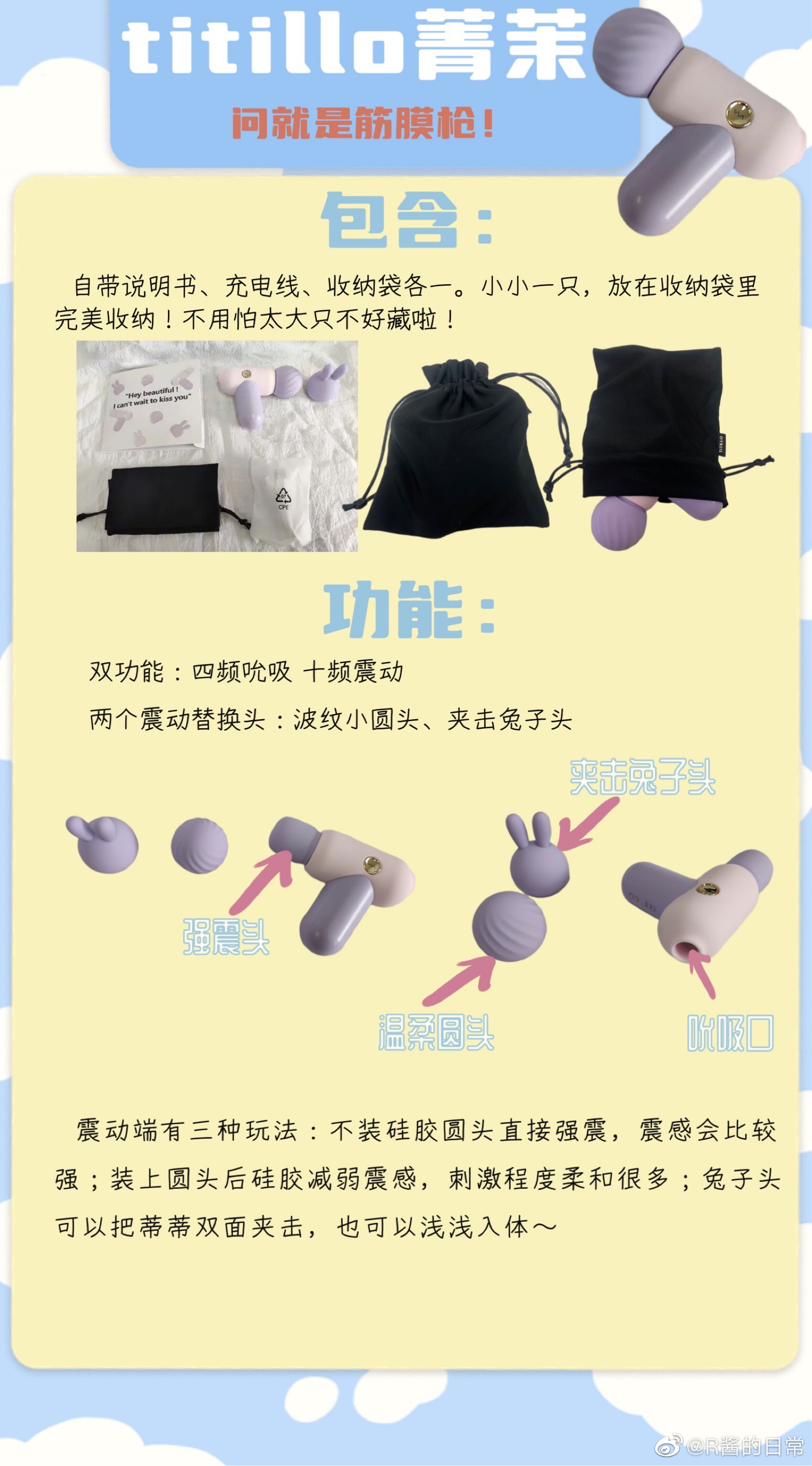 但是筋膜枪样子的小玩具有了呀!🉑吸🉑震,两个震动头替换,超小只一手掌握🙌🏻