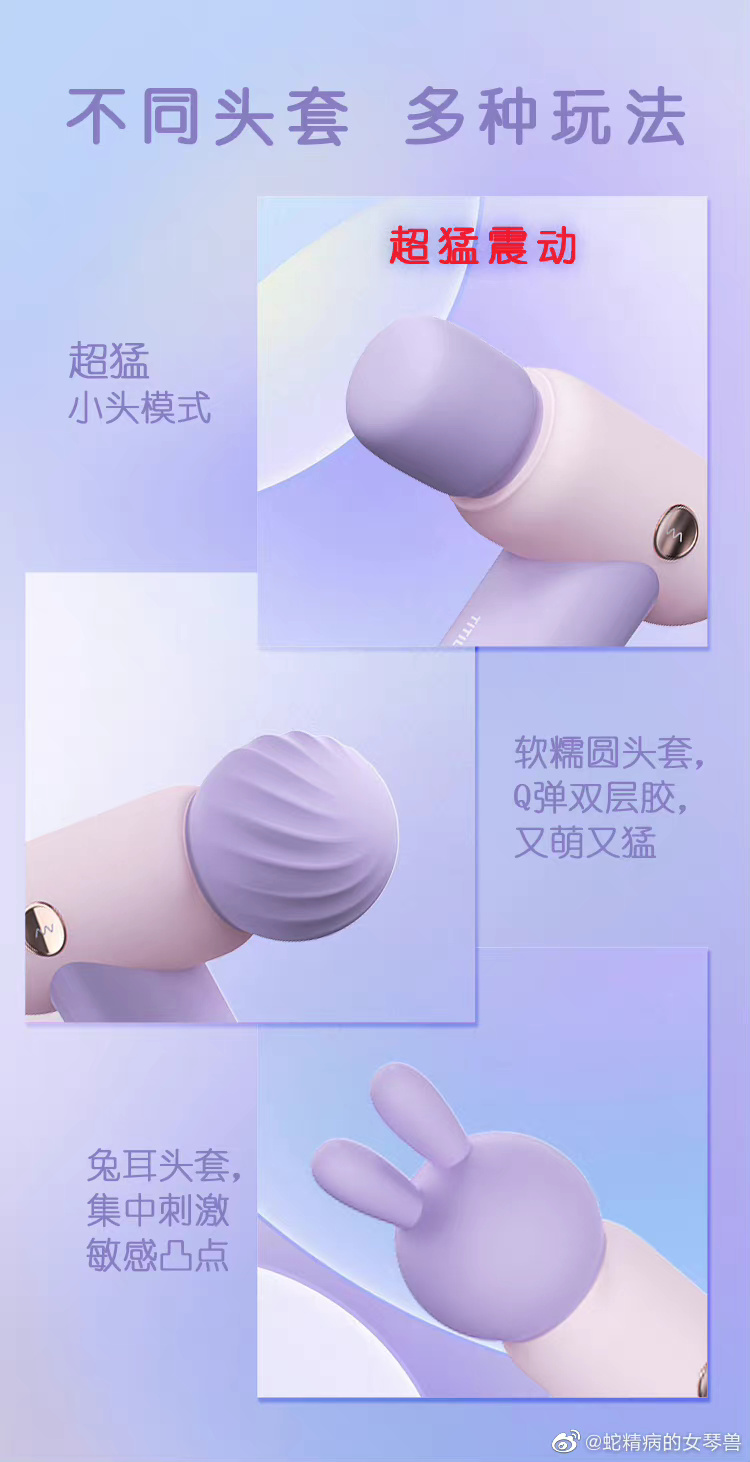 🔫一头o及o及,❹频;一头震动,①⓪档。💡还有小兔头套[兔子]&圆头圆脑🉑️更换![彩虹屁]兔兔更精准,循序渐进;圆头圆脑很软萌Q弹;如果摘掉这两个头套,震感就会非常强!三种玩法,不同快乐~🤤