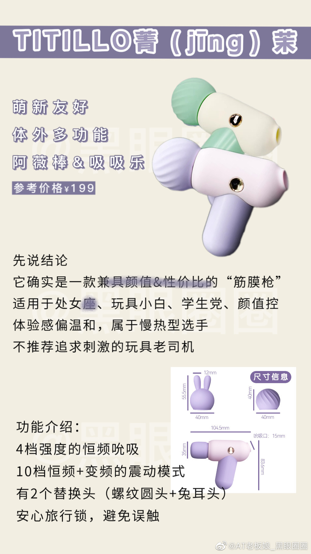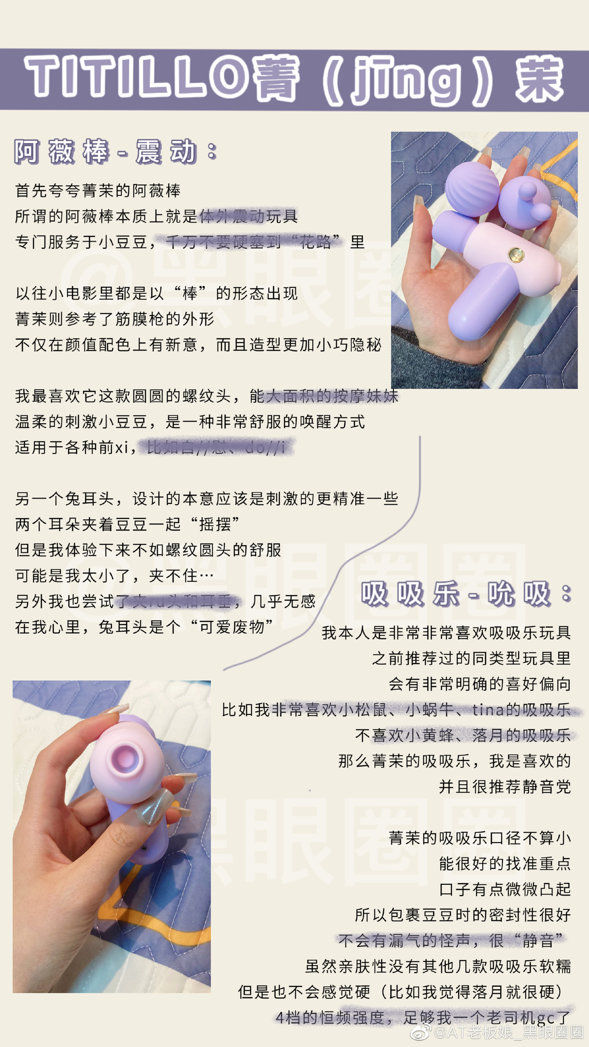 更多该专栏内容,戳这里下一篇没有情趣玩具比菁茉更隐蔽性的了!拿去吧你!【菁茉玩具测评】mini版“筋膜枪”🔫来自TITILLO头次在别处看见这个玩具就很吸引我,造型更是我喜欢的紫色菁茉是震动+吸吸乐结合一起!这类玩具很少见!“艾v棒”说实话我也是头次使用...