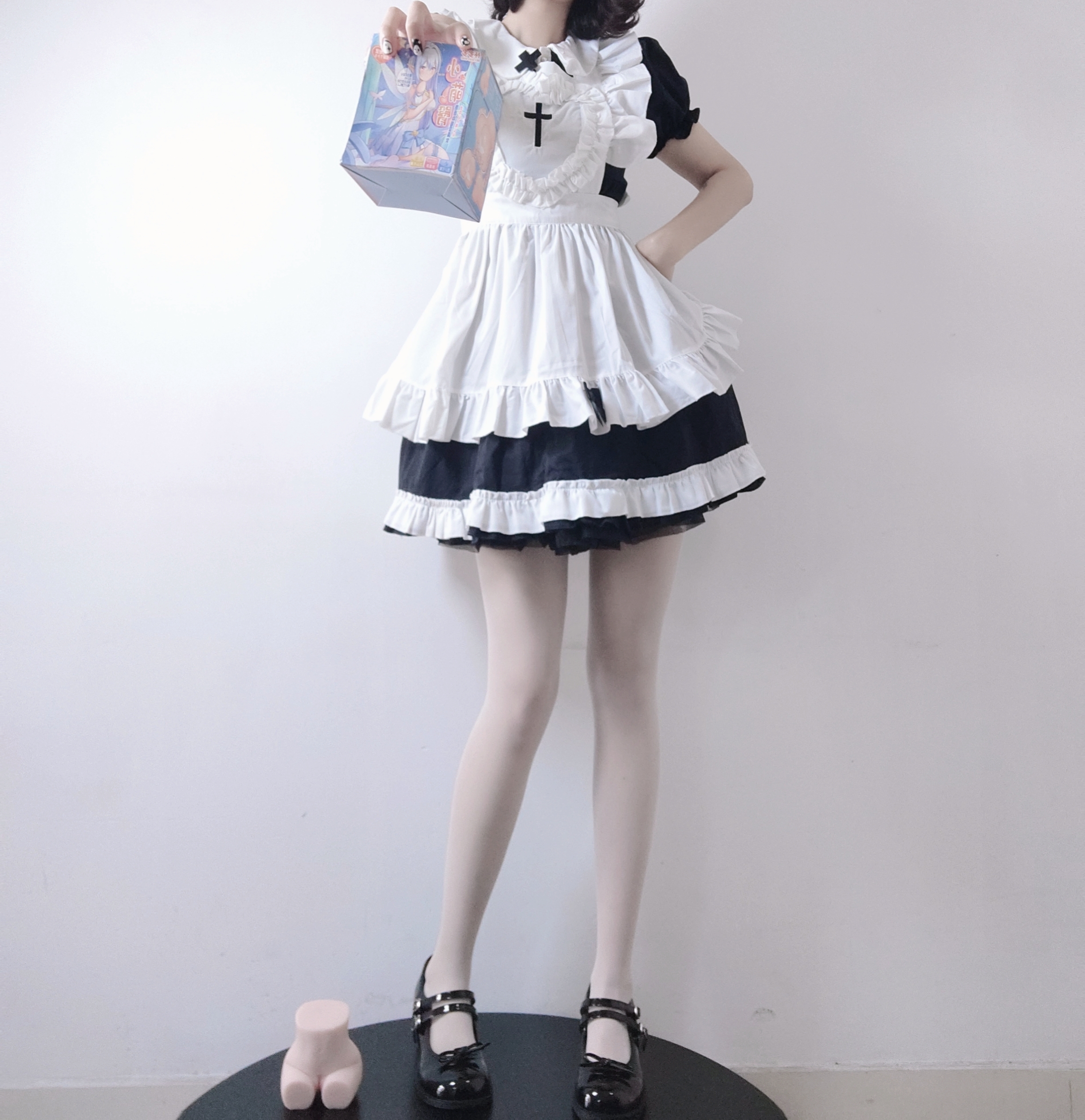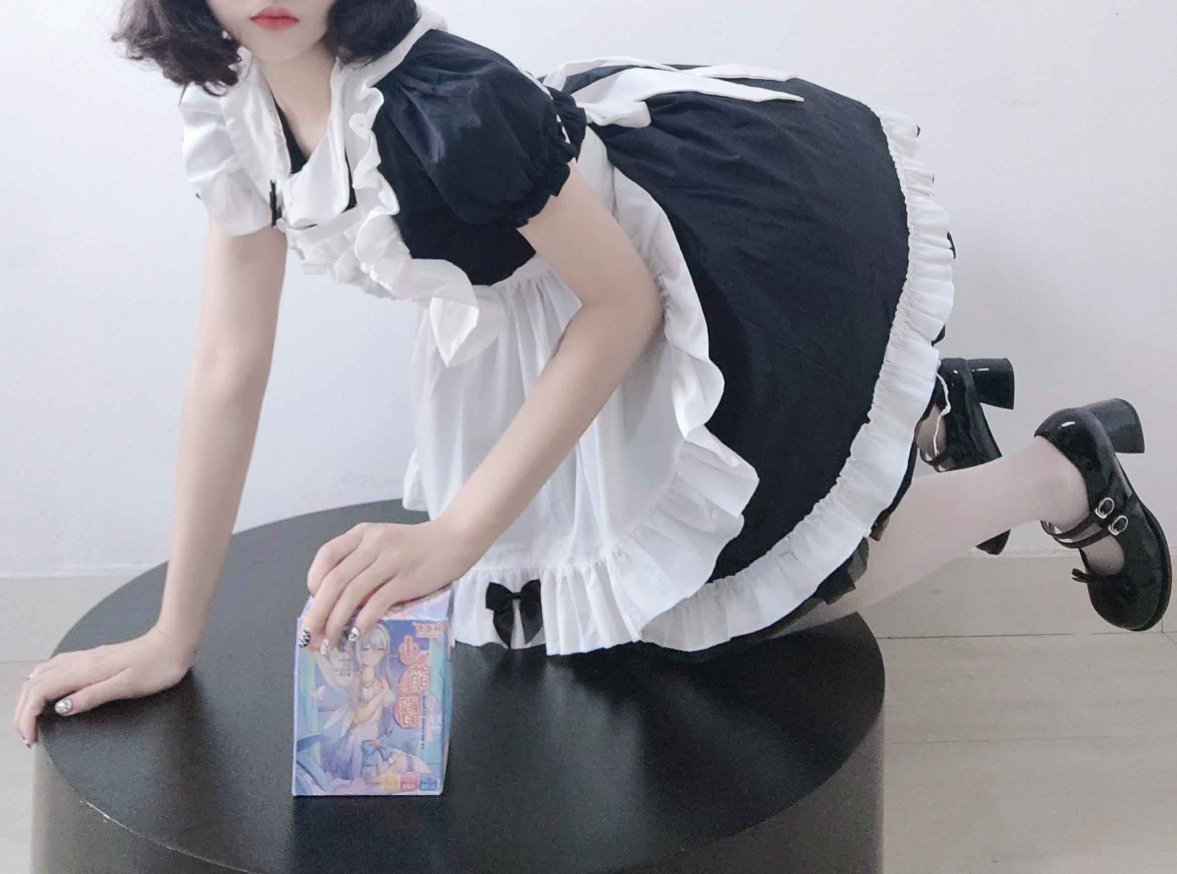 小姐姐身穿的这套女仆装,也是动漫中常见的女装。黑白相间百褶荷叶裙、白色吊带丝袜,加上脚踩的黑色皮鞋,全身上下简单朴素,没有任何鲜艳的颜色,却将大长腿小姐姐的气质和身材完美展现出来,实在是太迷人了。