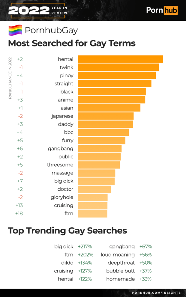 2022年,男性和女性最受欢迎的类别保持不变,男性依旧偏好“japanese(日本人)”,女性依旧偏好“lesbian(女同)”。