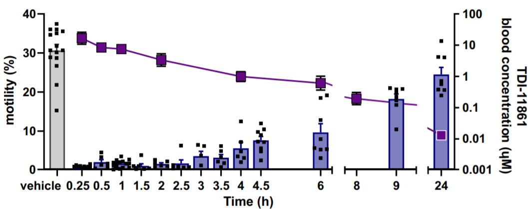 TDI-11861精子活力抑制与药代动力学相关(图源自Nature Communications )