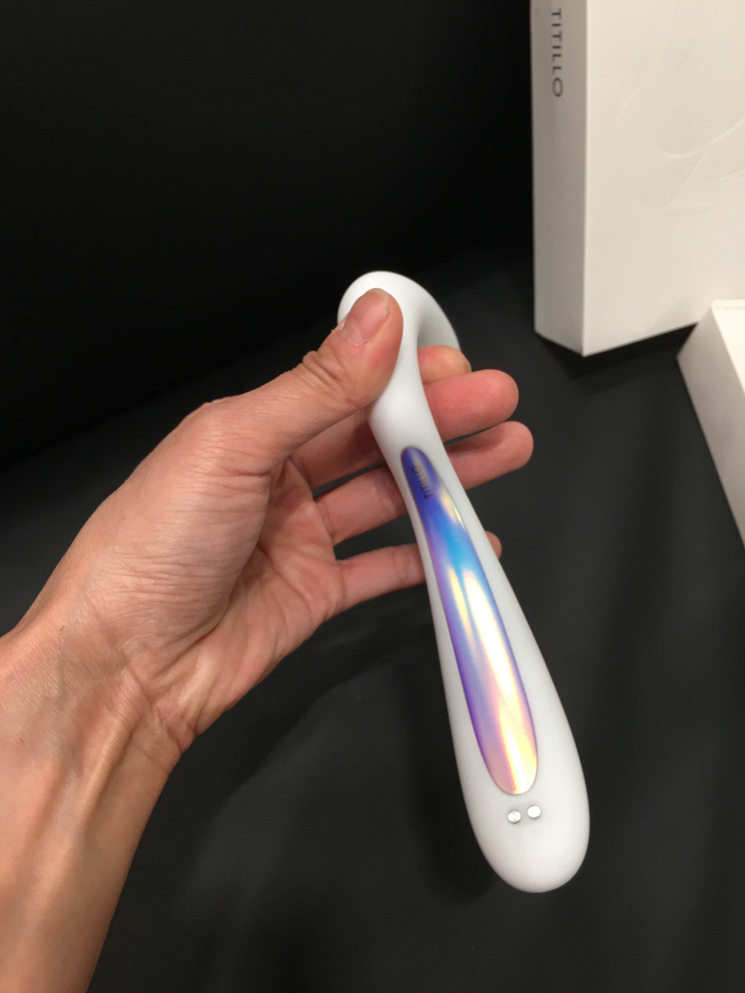 👏拍击面积比较大,应该是为了更容易接触到关键区域。入T端比较扁平,找点的时候可能需要根据每个人的具体情况调整一下角度(高把手的设计就是为了更方便找到点)不过我向来对入T无感,任何入T玩具对我来说都不起**,所以还得靠你们亲自去探索……