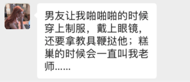 理解爱好,但是也需要把控程度, 如果特别的杏趣已经影响到了正常生活,比如:伴侣要求啪啪啪时拍视频、性暴力、严重恋物和露Y癖等,就请坚决“Say No”,快逃。