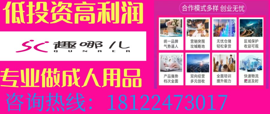 目前趣哪儿有5000多款产品,产品类目齐全且丰富多样,代理加盟方式更是多种可选:拼多多,淘宝,美团,饿了么,同城配送,一件代发,24小时无人售货店,实体店,1688小程序等等。我们是专业做成人用品,有专业的运营和技术团队,更有长达5年经验左右的选址督导,如果你也想了解更多关于成人用品,欢迎来咨询!