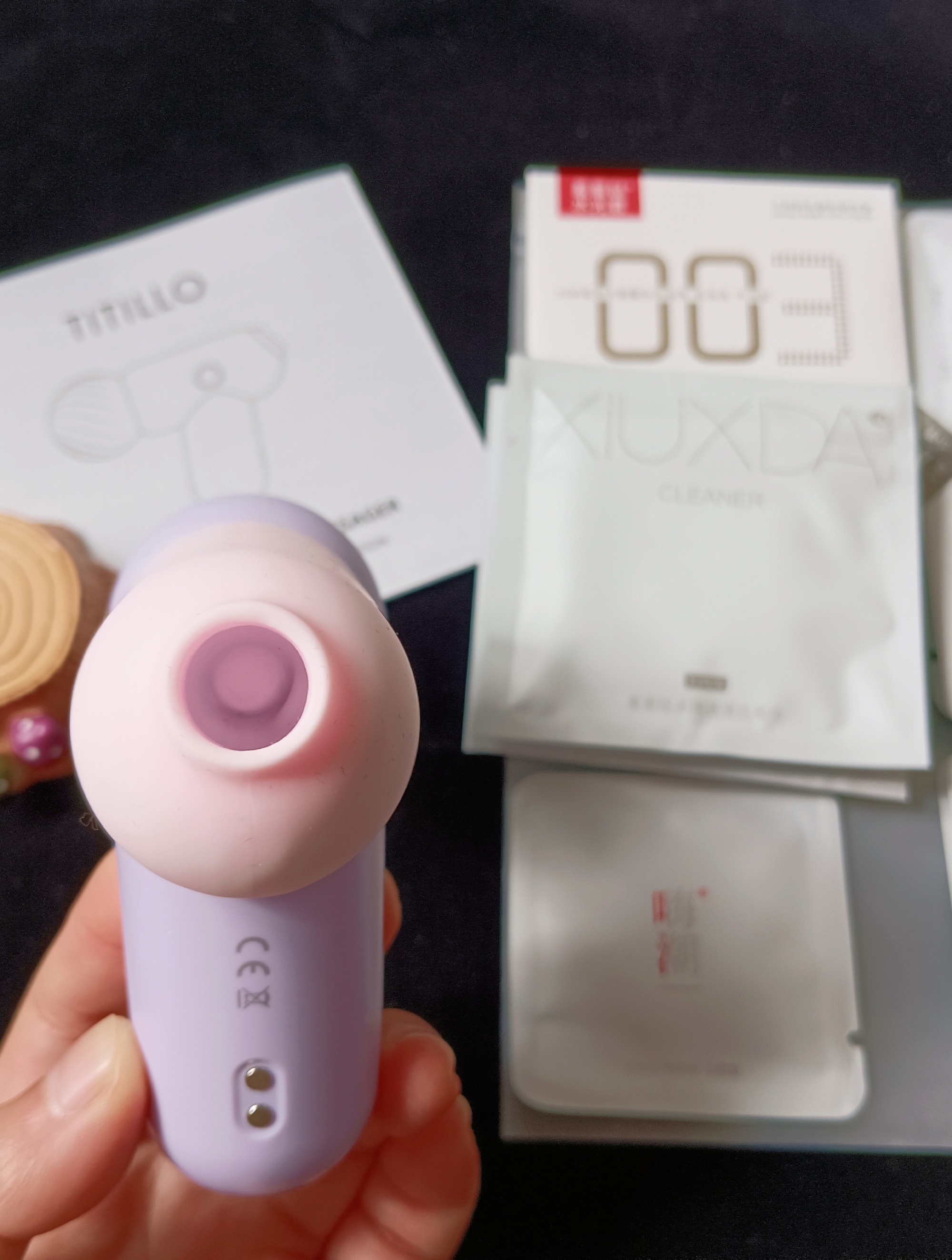 乍眼一看还以为是一个mini版的筋膜枪 确实特别小只 只有巴掌大小 再配上一个兔耳朵头套替换 一整个可爱住了 还特别便携 隐蔽性可以打💯分