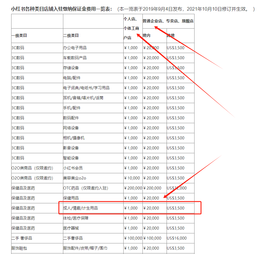 入驻小红书开成人用品店铺需要什么条件,多少钱保证金?
