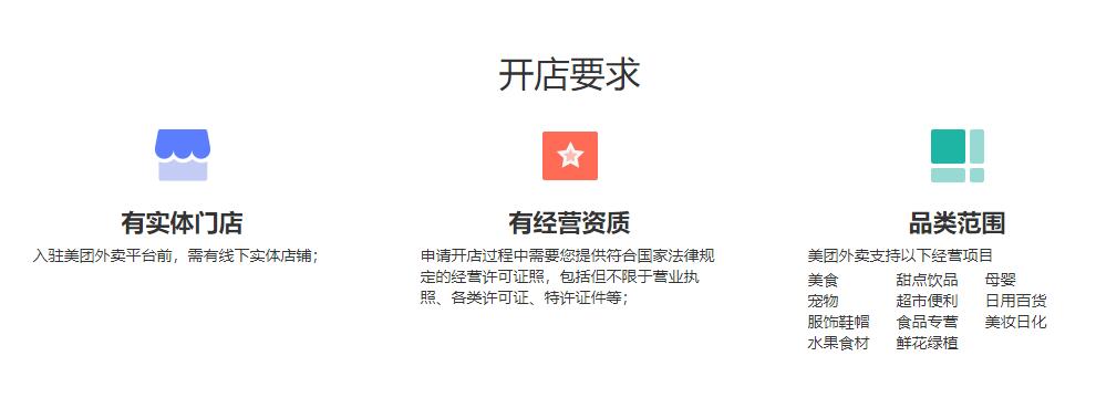 3. 如各省市资质有特殊要求或规定的,按照当地要求执行准入,这个需要在入驻时直接跟美团外卖客服沟通;