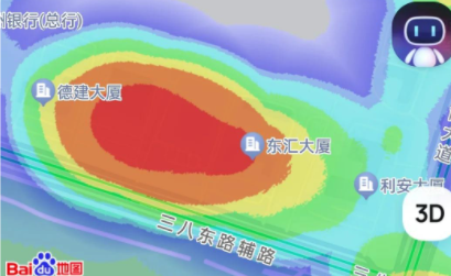 热图代表这里的人流量,紫色区域一般不用去。如果它们太偏远,集中在绿色、黄色和橙色区域。颜色越红,人流量越大。红色区域是人流量**高的区域,红色区域也有安静的店铺,不能荒废。
